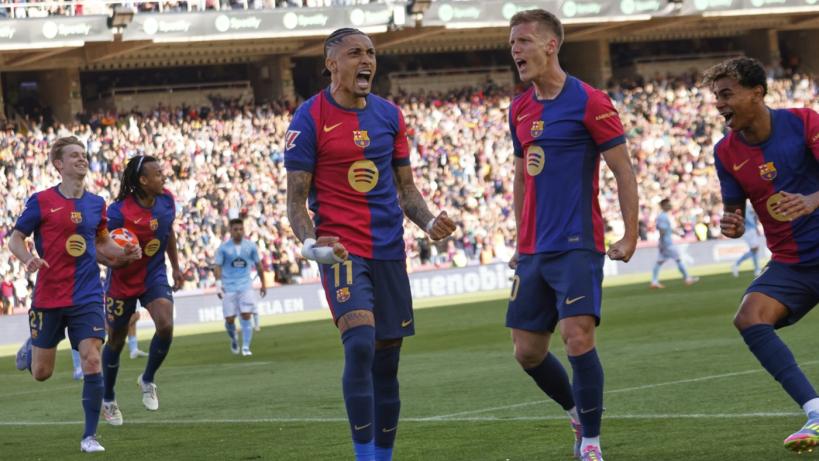 লা লিগায় প্রত্যাবর্তনের গল্প রচনা করলো ফুটবল ক্লাব বার্সেলোনা। নিজেদের মাঠে সেল্টা ভিগোর বিপক্ষে ২ গোলে পিছিয়ে পড়েও ৪-৩ তিন ব্যাবধানের জয় তুলে নিয়েছে হ্যান্সি ফ্লিকের দল। ম্যাচে ১ অ্যাসিস্টের পাশাপাশি জোড়া গোল করেছেন রাফিনিয়া। এ জয়ে লা লিগার শীর্ষস্থান আরও মজবুত করলো কাতালান ক্লাবটি।