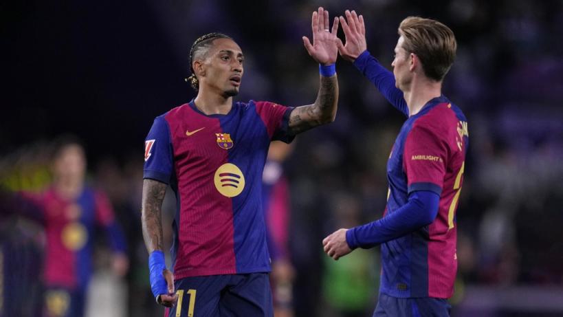 এরপর একের পর এক চেষ্টা করেও সমতায় ফিরতে পারছিল না কাতালানরা। তবে দ্বিতীয়ার্ধের শুরুতে রাফিনিয়া, ফ্রেংকি ডি ইয়ংকে মাঠে নামাতেই বাড়ে সফরকারীদের আক্রমণের ধার। ৫১তম মিনিটে রাফিনিয়ার দারুণ ফ্রি কিক কর্নারের বিনিময়ে রক্ষা করেন ভাইয়াদলিদ গোলরক্ষক। ৫৪তম মিনিটে অবশ্য ব্রাজিলিয়ান তারকাকে আর থামানো যায়নি। ইয়ামালের ক্রসে একটুর জন্য হেড করতে পারেননি আরাউহো। এগিয়ে এসে ফিস্ট করে ক্লিয়ার করার চেষ্টা করেন ফেরেইরা। বল পেয়ে যান রাফিনিয়া। বুক দিয়ে বল নামিয়ে ঠাণ্ডা মাথার শটে জাল খুঁজে নেন ব্রাজিলিয়ান ফরোয়ার্ড। সমতায় ফেরে বার্সা।