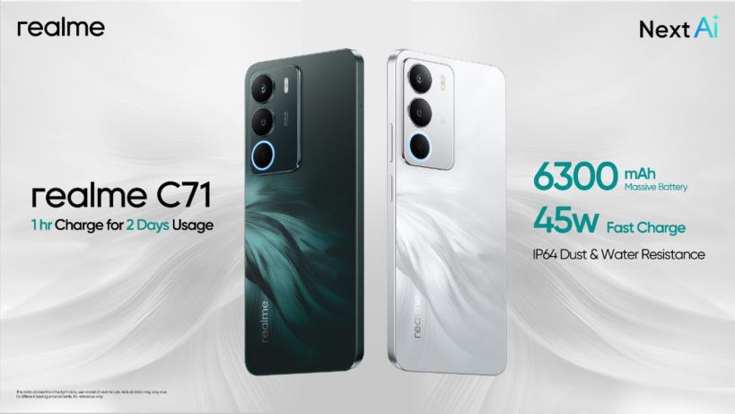টেক ব্র্যান্ড রিয়েলমি বাংলাদেশের বাজারে তাদের সর্বশেষ স্মার্টফোন রিয়েলমি সি৭১ নিয়ে এসেছে। নিরবচ্ছিন্ন ব্যাটারি পারফরম্যান্স চাইছেন এমন ব্যবহারকারীদের জন্য এই ডিভাইসটি ডিজাইন করা হয়েছে বলে জানিয়েছে প্রতিষ্ঠানটি।