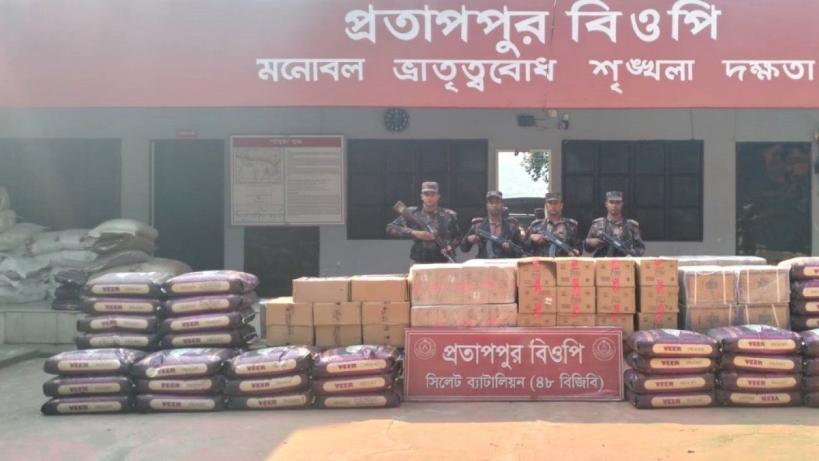 সোমবার ভোররাতে সুনামগঞ্জের বাংলাবাজার সিলেটের তামাবিল, সংগ্রাম, প্রতাপপুর, পান্থুমাই, শ্রীপুর, দমদমিয়া, বিছানাকান্দি এলাকায় এই অভিযান চালানো হয়। আটককৃত মালামালসমূহের বাজার মূল্য ১ কোটি ৪ হাজার ৮৭৫ টাকা।