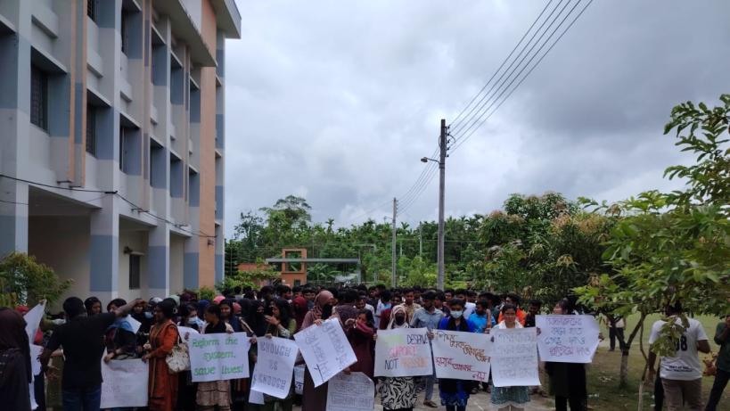 বিক্ষুব্ধ শিক্ষার্থীরা জানান, পরীক্ষায় অসদুপায় অবলম্বন করার কারণে কয়েকদিন আগে ময়মনসিংহ ইঞ্জিনিয়ারিং কলেজের শিক্ষার্থী ধ্রুবজিৎ কর্মকারকে বহিস্কার করা হয়। এরপর সে আত্মহত্যা করে। কম্পাইন্ড সিস্টেমে পরীক্ষার কারণে সে চাপ সামাল দিতে না পেরে এমন কাজ করেছে বলে সাধারণ শিক্ষার্থীরা মনে করছেন।