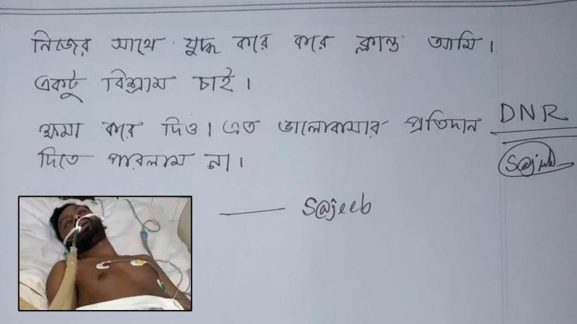 'নিজের সাথে যুদ্ধ করে করে ক্লান্ত আমি। একটু বিশ্রাম চাই। ক্ষমা করে দিও। এত ভালোবাসার প্রতিদান দিতে পারলাম না।'- পড়াশুনার অতিরিক্ত চাপ সামলাতে না পেরে নিজেই শরীরে ইনজেকশন পুশ করে আত্মহত্যা করেছে মেডিকেল স্টুডেন্ট সজীব বাড়ৈই।