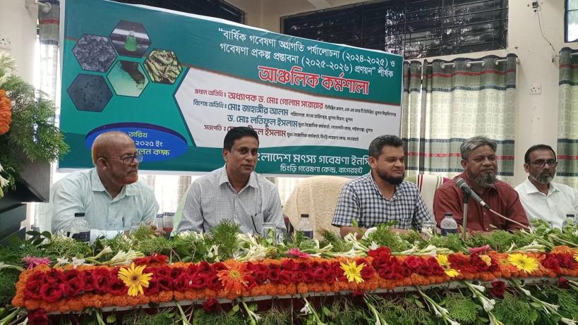 বাংলাদেশ মৎস্য গবেষণা ইনস্টিটিউট এর চিংড়ি গবেষণা কেন্দ্র, বাগেরহাট এর আয়োজনে "বার্ষিক গবেষণা অগ্রগতি পর্যালোচনা (২০২৪-২০২৫) ও গবেষণা প্রকল্প প্রস্তাবনা (২০২৫-২০২৬) প্রণয়ন" শীর্ষক "আঞ্চলিক কর্মশালা" অনুষ্ঠিত হয়েছে।