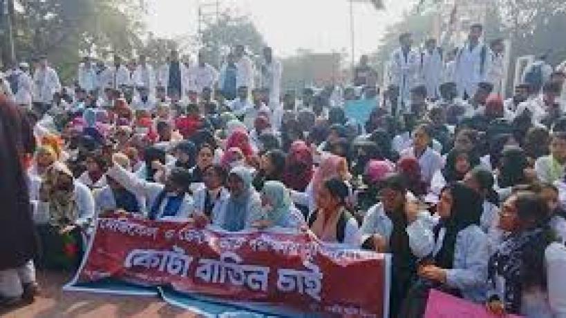 এদিকে, মেডিকেল শিক্ষার্থীদের সাথে একাত্মতা প্রকাশ করে ঢাকা বিশ্ববিদ্যালয়ের শিক্ষার্থীরাও। ভর্তি পরীক্ষা ও চাকুরিসহ সকল পরীক্ষা থেকে অযৌক্তিক কোটা চিরতরে বাতিলের দাবি জানান। বর্তমানে, মুক্তিযোদ্ধার সন্তানদের জন্য ৫ শতাংশ, পাহাড়ি জনগোষ্ঠীর জন্য ২ শতাংশ ও ক্ষুদ্র নৃগোষ্ঠীর জন্য ১ শতাংশ কোটা সংরক্ষিত আছে। সে অনুযায়ী রোববার মেডিকেল ফলাফল প্রকাশ করে কর্তৃপক্ষ।