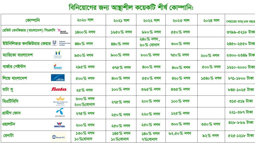 বিনিয়োগের জন্য আস্থাশীল কয়েকটি শীর্ষ কোম্পানি: