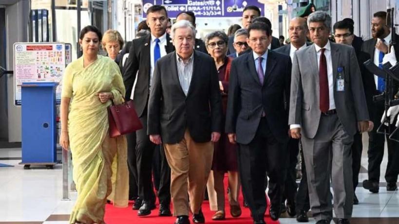 এর আগে গত বৃহস্পতিবার বিকালে জাতিসংঘের মহাসচিব ঢাকার হযরত শাহজালাল আন্তর্জাতিক বিমানবন্দরে পৌঁছান। সেখানে তাকে স্বাগত জানান পররাষ্ট্র উপদেষ্টা মো. তৌহিদ হোসেন। জাতিসংঘ মহাসচিবের হাতে ফুল তুলে দেয় শিশুরা।