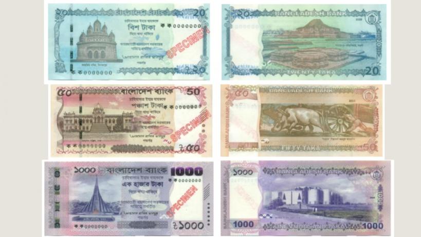বাংলাদেশ ব্যাংক জানিয়েছে, ১০০০, ৫০ ও ২০ টাকার এই নতুন নোটগুলোতে বাংলাদেশের ইতিহাস ও প্রাকৃতিক সৌন্দর্যের বিভিন্ন প্রতীকী ছবি থাকবে।