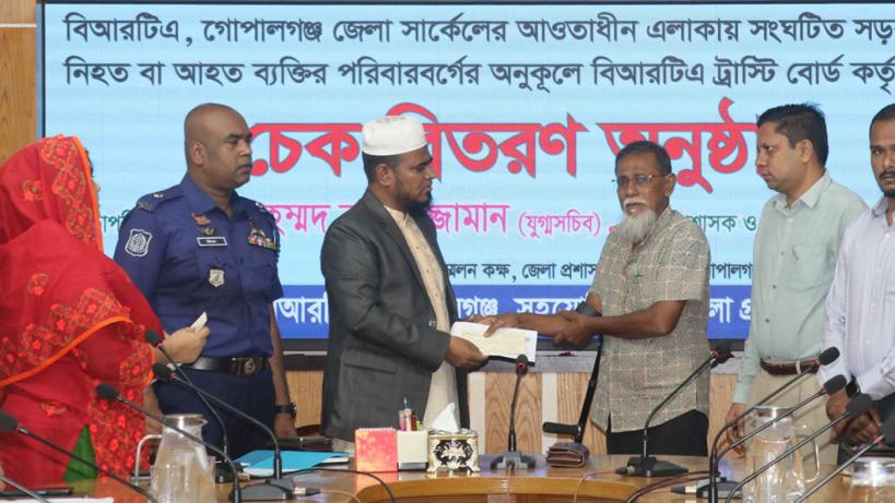 বিআরটিএর গোপালগঞ্জ জেলা সার্কেলের আওতাধীন এলাকায় সংঘটিত সড়ক দুর্ঘটনায় নিহত ৮টি পরিবারোর মধ্যে অনুদানের চেক বিতরণ করা হয়েছে। বাংলাদেশ বিআরটি ট্রাস্টি বোর্ড কর্তৃক মঞ্জুরকৃত এসব চেক বিতরণ করা হয়।