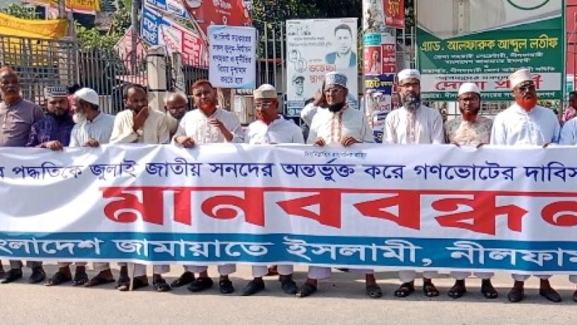 জামায়াতের পাঁচ দফা দাবিতে নীলফামারীতে মানববন্ধন