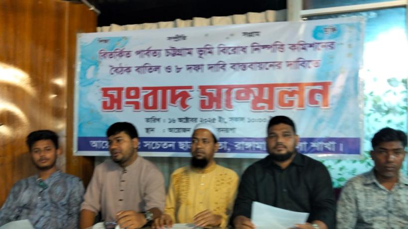 বৃহস্পতিবার (১৬ অক্টোবর) সকাল ১১টায় রাঙামাটি শহরের এক রেস্তোরাঁয় আয়োজিত সংবাদ সম্মেলনে এই কর্মসূচির ঘোষণা দেন সংগঠনের জেলা সভাপতি মো. তাজুল ইসলাম তাজ। এ সময় তিনি জানান, ভূমি কমিশনের বিতর্কিত বৈঠক প্রতিহত ও ছাত্র–জনতার পক্ষ থেকে উত্থাপিত ৮ দফা দাবি বাস্তবায়নের দাবিতে রাঙামাটিতে বিক্ষোভ, ঘেরাও ও হরতাল কর্মসূচি পালিত হবে।