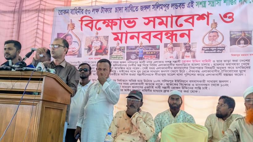 হবিগঞ্জের চুনারুঘাট উপজেলার সীমান্তসংলগ্ন সাতছড়ি জাতীয় উদ্যান এলাকায় গাছ ফেলে...