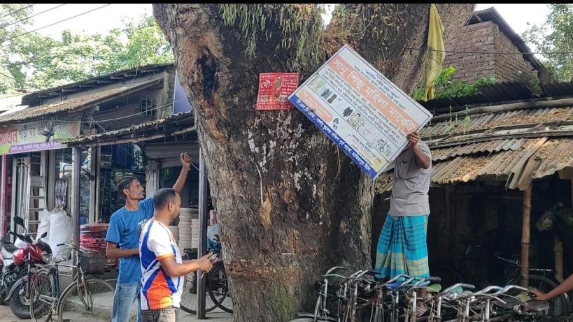 ব্যানার-সাইনবোর্ডে ঢেকে যাচ্ছিল হিলির গাছ, অভিযানে নামলেন পৌর প্রশাসক