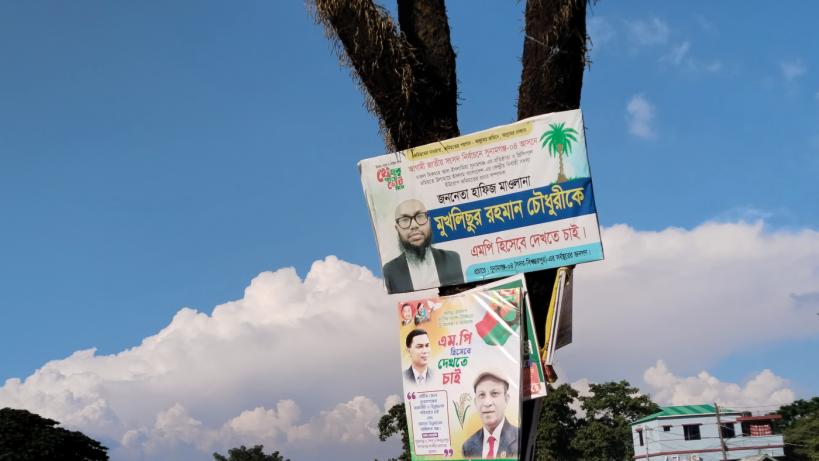 সুনামগঞ্জে গাছে গাছে ঝুলছে ব্যানার-ফেস্টুন