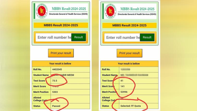 এমবিবিএস ২০২৪-২৫ শিক্ষাবর্ষে ভর্তি পরীক্ষায় ১০০ নম্বরের মধ্যে ৭৩ নম্বর পেয়েও অনেক শিক্ষার্থী সরকারি মেডিকেল কলেজে ভর্তির সুযোগ থেকে বঞ্চিত হচ্ছেন। তবে কোটায় ৪১ নম্বর পেয়েও প্রায় আড়াইশো শিক্ষার্থী ভর্তির সুযোগ পাচ্ছেন বলে জানা গেছে। এ বিষয়ে সামাজিক যোগাযোগ মাধ্যমে সমালোচনার ঝড় উঠেছে। ক্ষোভ প্রকাশ করেছেন বেশি নম্বর পেয়েও বঞ্চিত শিক্ষার্থীরা।