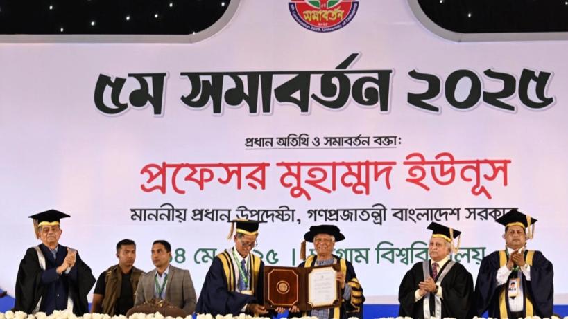 চট্টগ্রাম বিশ্ববিদ্যালয়ের (চবি) পঞ্চম সমাবর্তনে অন্তর্বর্তী সরকারের প্রধান উপদেষ্টা অধ্যাপক ড. মুহাম্মদ ইউনূসকে ডি.লিট ডিগ্রি প্রদান করেছে বিশ্ববিদ্যালয় কর্তৃপক্ষ।