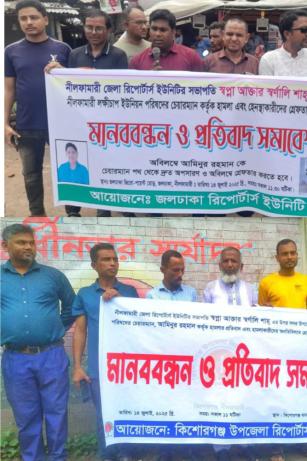 একই ভাবে পোস্ট দিয়েছেন জেলা ছাত্রদলের সভাপতি মারুফ পারভেজ প্রিন্স এবং পোস্ট দিয়েছেন এনসিপির কেন্দ্রীয় কমিটির উত্তরাঞ্চলের মুখ্য সংগঠক আবু সাঈদ লিওন। তারই ধারাবাহিকতায় আজ ১৪ জুলাই সোমবার সকালে নীলফামারীর জলঢাকা উপজেলা রিপোর্টার্স ইউনিটির আয়োজনে শহরের জিরো পয়েন্টে এবং কিশোরগঞ্জ রিপোর্টার্স ইউনিটির আয়োজনে থানার মোড়ে মানববন্ধন ও প্রতিবাদ সমাবেশ করেন।