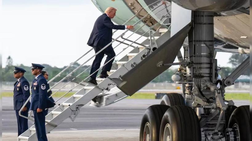রবিবার নিরাপত্তার কারণে ট্রাম্পকে তুলনামূলক ছোট সিঁড়ি দিয়ে বিমানে উঠতে হয়েছে বলেও খবর পাওয়া গেছে।