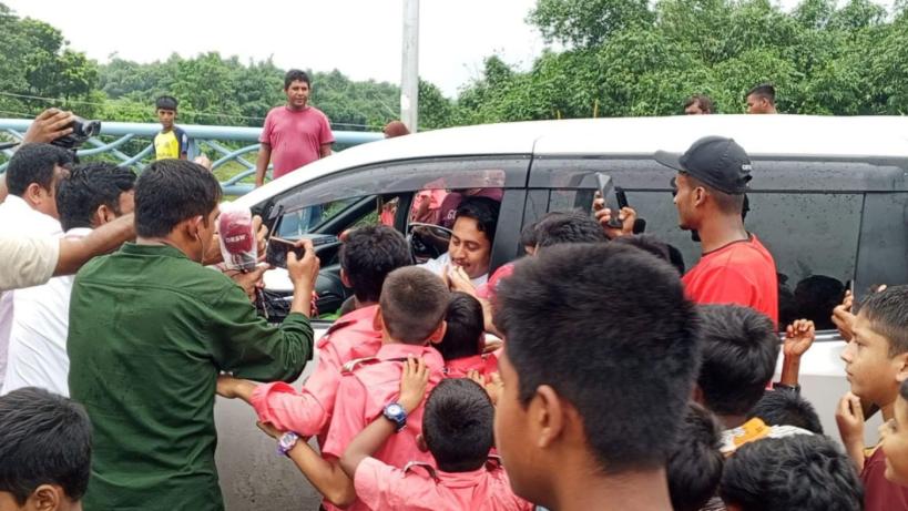 জাতীয় নাগরিক পার্টি (এনসিপি) ঘোষিত 'দেশ গড়তে জুলাই পদযাত্রা' কর্মসূচি উপলক্ষ্যে চুয়াডাঙ্গার আলমডাঙ্গায় এসেছেন কেন্দ্রীয় নেতাকর্মীরা। এ সময় উপজেলার হাটবোয়ালিয়া বাজারে কেন্দ্রীয় নেতাদের শুভেচ্ছা জানাতে সড়কের দু'পাশে লাইন ধরে দাঁড়িয়েছিল বিদ্যালয়ের ইউনিফর্ম পরিহিত বহু শিক্ষার্থী।