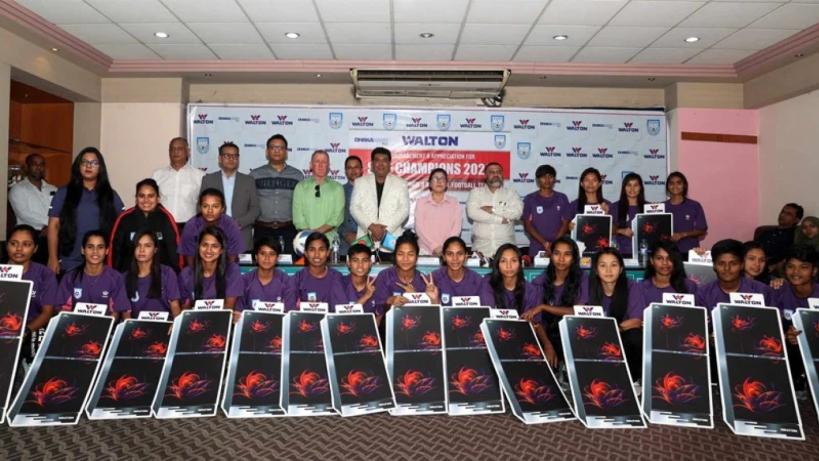বাংলাদেশ জাতীয় নারী ফুটবল দলকে সংবর্ধনা দিয়েছে ওয়ালটন। এ সময় সাফ চ্যাম্পিয়নদের একটি করে ফ্রিজ উপহার দিয়েছে প্রতিষ্ঠানটি। নারী ফুটবলের দীর্ঘদিনের পৃষ্ঠপোষক ওয়ালটন দলের সদস্যসহ কোচিং স্টাফ-সাপোর্ট স্টাফ মিলিয়ে ৩২ জনের এই উপহার দেয়।
